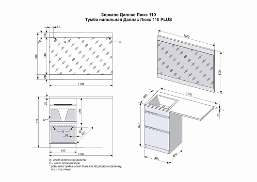 Style Line Мебель для ванной Даллас 110 Люкс R, белая PLUS