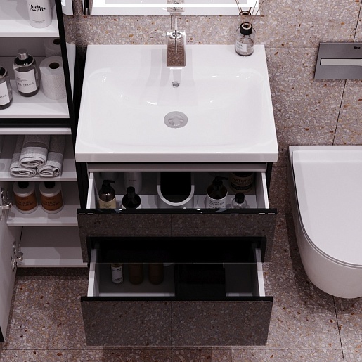 Тумба для умывальника Даймонд 60 Люкс черная, PLUS