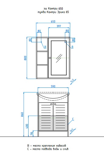 - напольная тумба под раковину: 2 распашные дверцы, оригинальные ручки "под бронзу", ножки