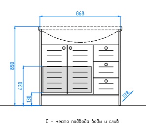 - напольная тумба под раковину: 2 распашные дверцы, 3 ящика, ножки