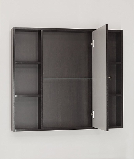 Описание: зеркальный распашной шкаф с боковыми полками. Стеклянные внутренние полки с еврокромкой и полкодержателями. Оригинальная ручка "под бронзу".