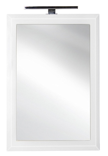 Описание: влагостойкое зеркальное полотно в белоснежной раме. Покрытие рамы - глянцевая ламинированая пленка. Светильник LED.