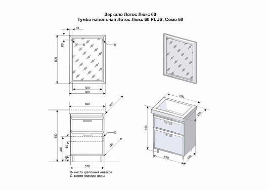 Style Line Мебель для ванной Лотос 60 Люкс белая PLUS