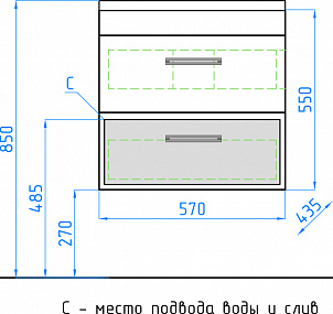 Описание: тумба с двумя выдвижными ящиками на доводчиках полного выдвижения, фаянсовая раковина КОМО 60. Покрытие фасадов ламинированая пленка.