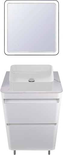 В комплекте: тумба, раковина, столешница, зеркало, ножка (4 шт.), крепеж.
