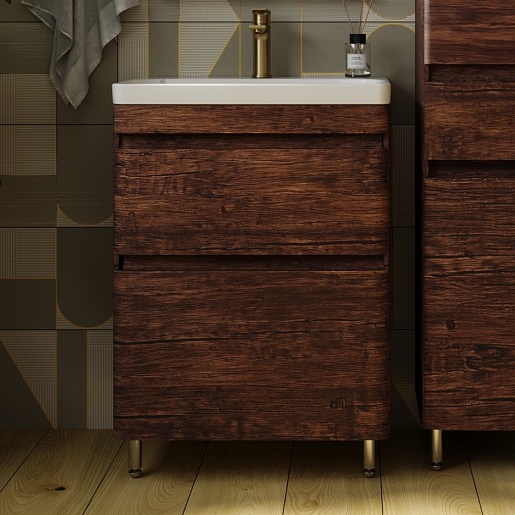Тумба для умывальника напольная Атлантика 60, Люкс старое дерево, PLUS