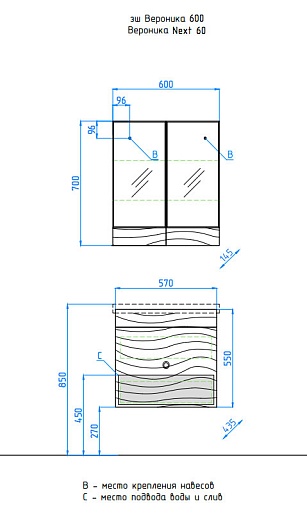 Тумба с раковиной "Вероника 60" — арт. ЛС-00000180 / ЛС-00000136