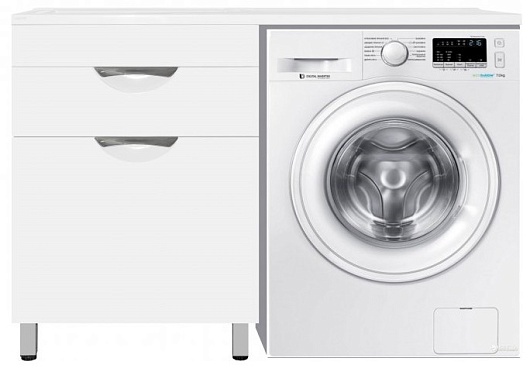 - напольная тумба под раковину: ящик, распашная дверца, корзина для белья, ножки