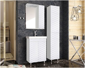 Описание: Напольный пенал для ванной с двумя распашными дверцами и системой "Push to open". Декоративная 3D-фрезеровка фасада.