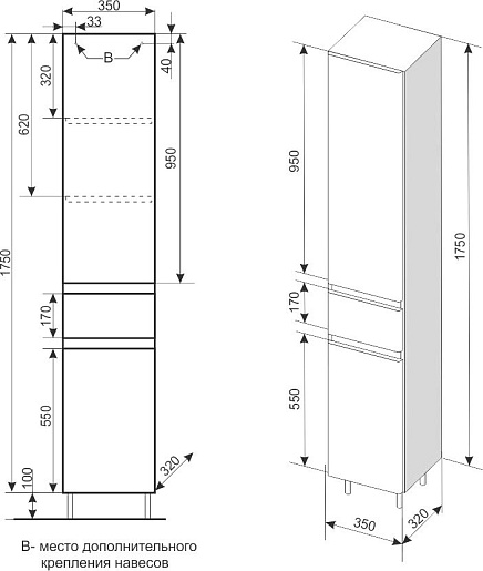 Шкаф пенал Style Line Атлантика 35 Люкс Plus - арт. СС-00002284.