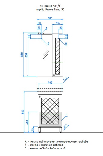 Размеры ШxГхВ: 465х380х820 мм.