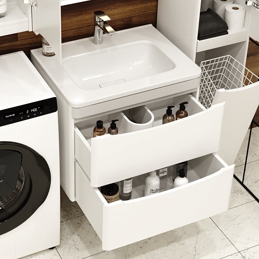 Тумба под раковину Бергамо Мини 60 подвесная белая Люкс антискрейтч Plus