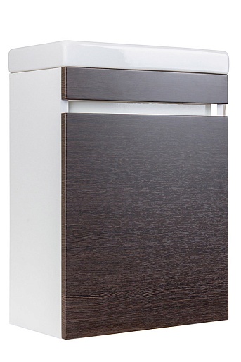 Описание: распашная дверь, петли справа, полочка, покрытие фасада ДСП, матовая пленка венге; покрытие корпуса ДСП, глянцевая белая пленка. Фаянсовая раковина Como 40.