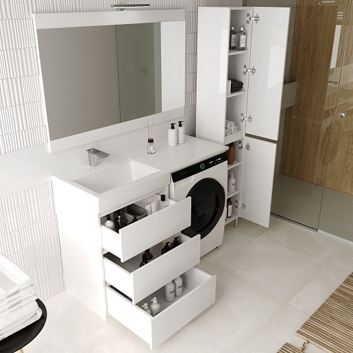 Тумба для умывальника Даллас 120 Люкс Plus 3 ящ., белая