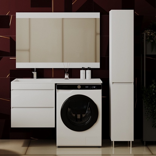 Тумба для умывальника Даллас 120 Люкс, белая PLUS подвесная