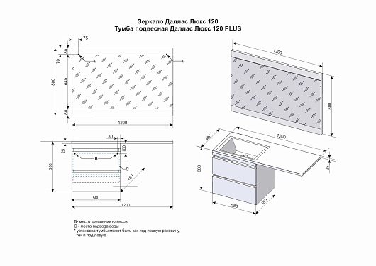 Style Line Тумба с раковиной Даллас 120 Люкс L, белая PLUS подвесная