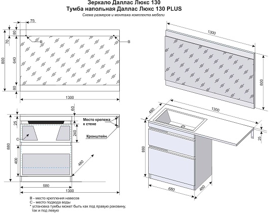 Тумба для умывальника Даллас 130 Люкс, белая PLUS эмаль