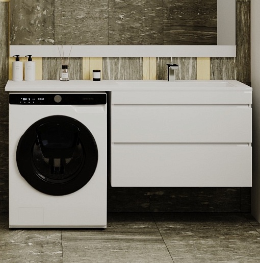Style Line Тумба с раковиной Даллас 150 R Люкс Plus 2 ящика подвесная белая