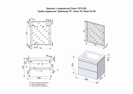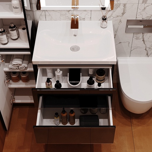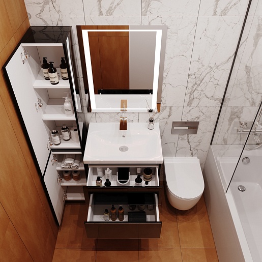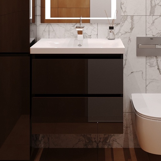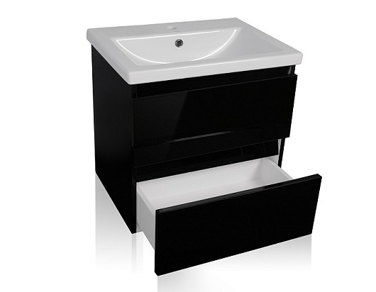 Style Line Тумба с раковиной Даймонд 70 Люкс черная, PLUS подвесная