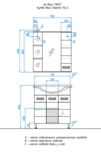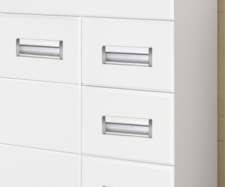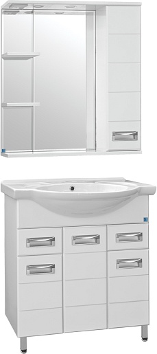 - напольная тумба под раковину: 3 распашных дверцы, 2 выдвижных ящика, врезные ручки с комбинированным покрытием хром и матовый хром, ножки