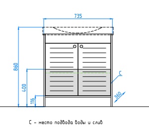 - напольная тумба под раковину: 2 распашные дверцы, ножки