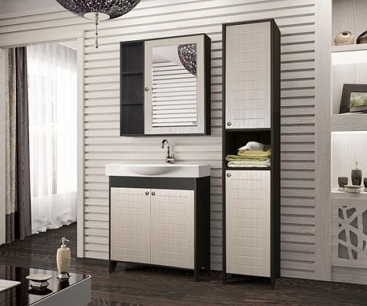Style Line Тумба с раковиной Кантри 75 венге/ лен белый