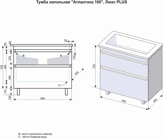 Тумба для умывальника напольная Атлантика 100, Люкс, ясень перламутр, PLUS