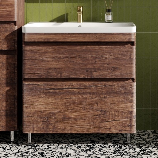 Тумба для умывальника напольная Атлантика 80, Люкс старое дерево, PLUS