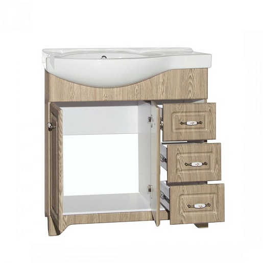 - напольная тумба под раковину Олеандр-2 82 ,ЛС-000010026: 2 распашных дверцы, 3 выдвижных ящика, ручки, ножки
