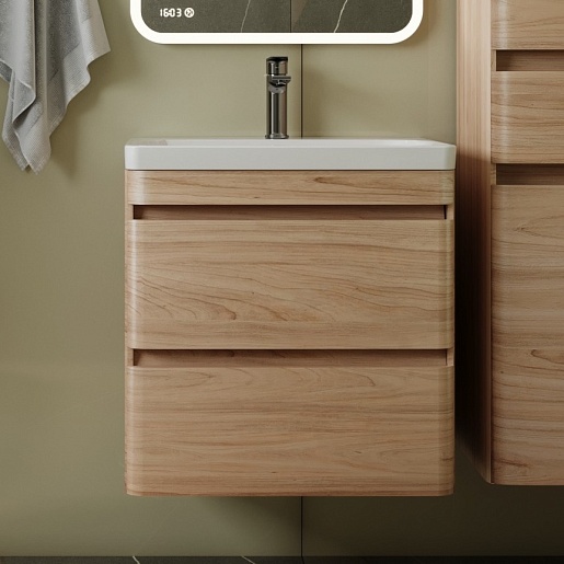 Style Line Тумба с раковиной подвесная Атлантика 60, Люкс ясень перламутр, PLUS