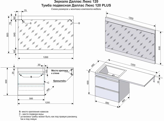 Подвесная тумба с раковиной Style Line Даллас 120 R Люкс белая Plus эмаль - арт. СС-00002351 / СС-00000394.