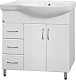 - напольная тумба под раковину: 2 распашные дверцы, 3 выдвижных ящика, металлические ручки, ножки.