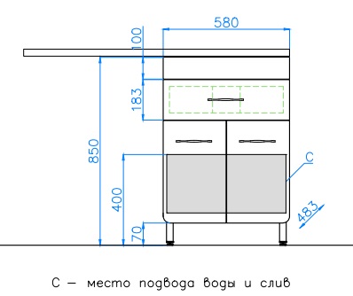 - напольная тумба под раковину ВаЛеРо 60 ЛС-00000578: выдвижной ящик, два распашных фасада, ножки
