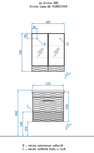 Описание: зеркальный шкаф для ванной с распашными дверцами.
