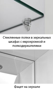 Описание: шкафчик с зеркальным распашным фасадом, боковые открытые полки. В козырьке встроенный светильник, выключатель с розеткой.