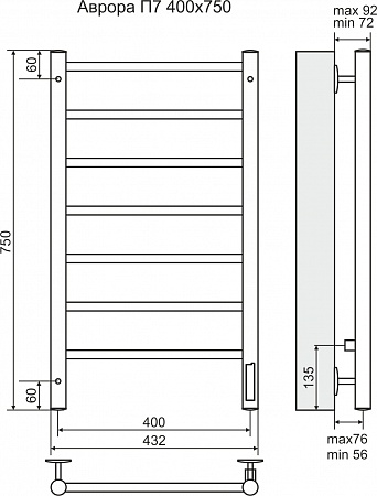 Terminus Полотенцесушитель электрический Аврора П7 400х750