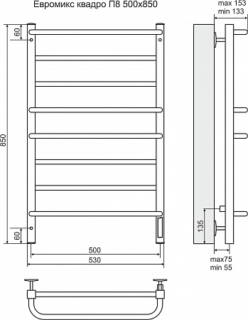 Terminus Полотенцесушитель электрический Евромикс квадро П8 500х850 диммер справа