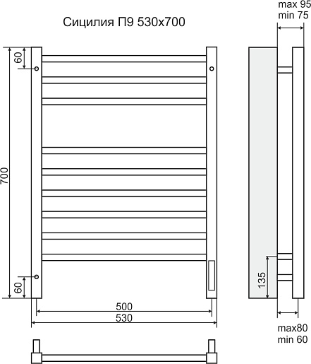 Полотенцесушитель электрический Terminus Сицилия П9 530x700 хром - арт. 4670078526311.