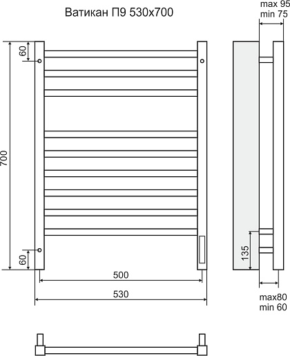 Terminus Полотенцесушитель электрический Ватикан П9 530x700 хром
