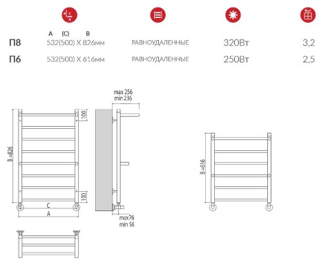 Terminus Полотенцесушитель водяной Анкона сп П6 500x591