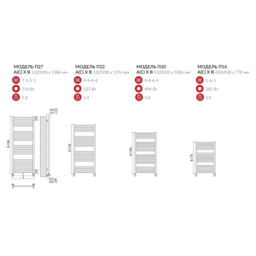 Terminus Полотенцесушитель водяной Аврора П22 1196х500