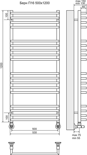 Terminus Полотенцесушитель водяной Берн П16 530x1000 хром