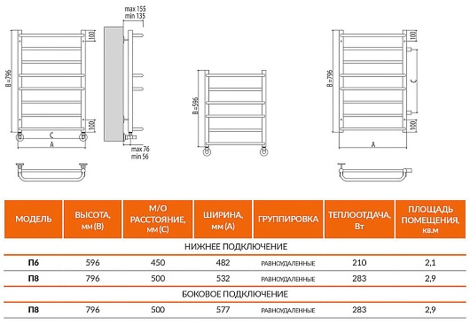 Terminus Полотенцесушитель водяной Евромикс П8 500x796-500 с боковым подключением