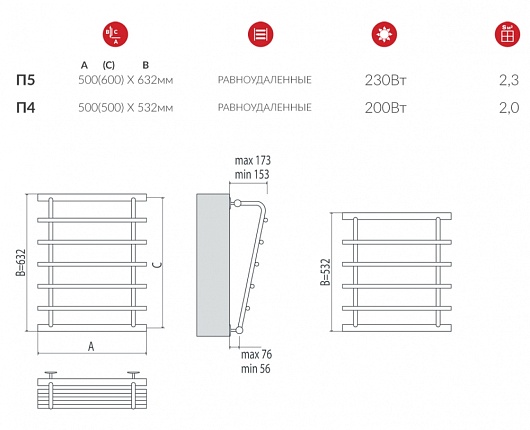 Terminus Полотенцесушитель водяной Каскад П5 с боковым подключением