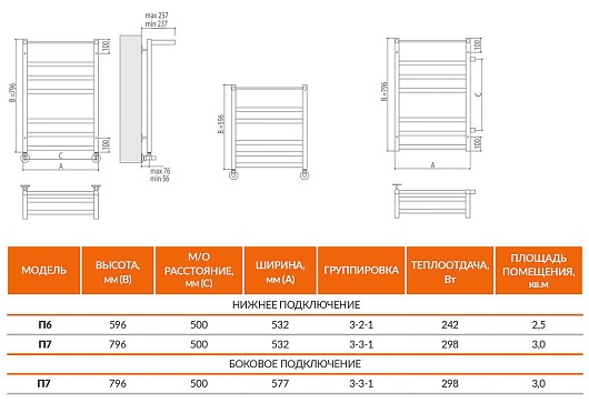 Terminus Полотенцесушитель водяной Хендрикс П7 с боковым подключением справа