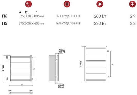 Terminus Полотенцесушитель водяной Контур П6 500х700