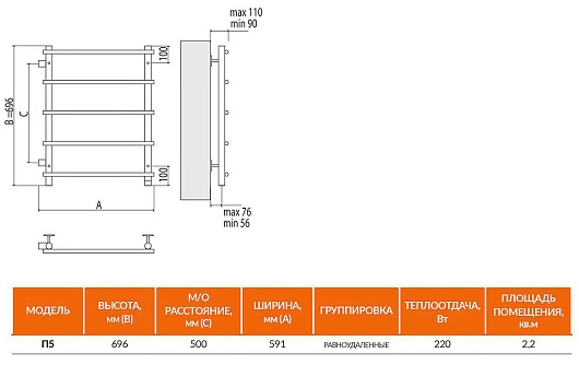 Terminus Полотенцесушитель водяной Квинта П5 с боковым подключением