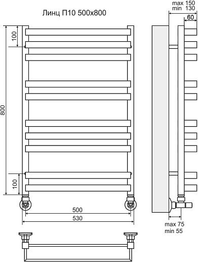 Terminus Полотенцесушитель водяной Линц П10 530x800 хром