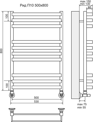 Terminus Полотенцесушитель водяной Рид П10 530x800 хром
