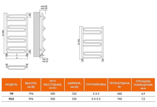 Terminus Полотенцесушитель водяной Юпитер П12 500x996